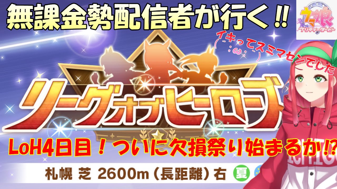ウマ娘プリティーダービーのリーグオブヒーローズ(札幌2600m芝)の4日目を走ります‼